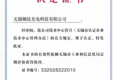 無錫市企業(yè)技術中心證書